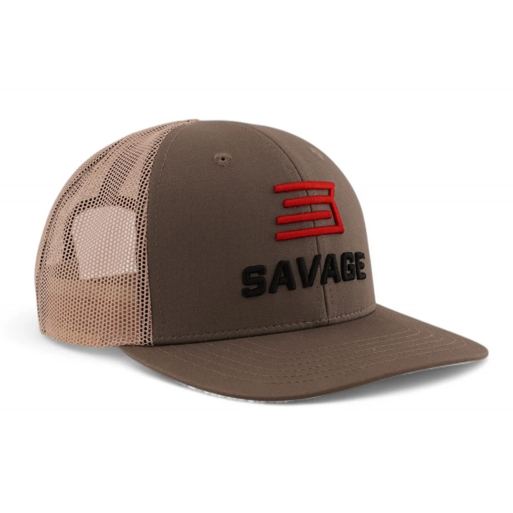 Timeless cap features a rich, brown leather patch emblazoned with the iconic Savage logo